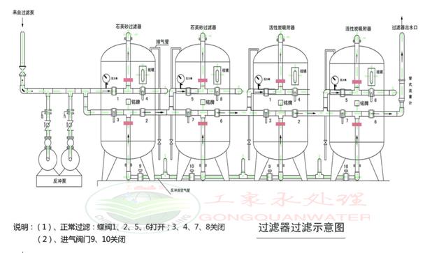 石英砂過濾是去除水中懸浮物最有效手段之一,是污水深度處理、污水回用和給水處理中重要的單元。其作用是將水中已經絮凝的污染物進一步去除,它通過濾料的截留、沉降和吸附作用,達到凈水的目的。